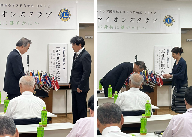 ![]() ゲスト紹介 加西ライオンズクラブ 会長 L.高井 宏文 幹事 L.深田 照明 |