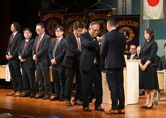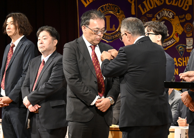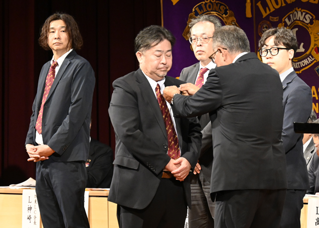 ![]() 新会員入会式 新会員バッチ装着 加東LC L.村上 琢也 |