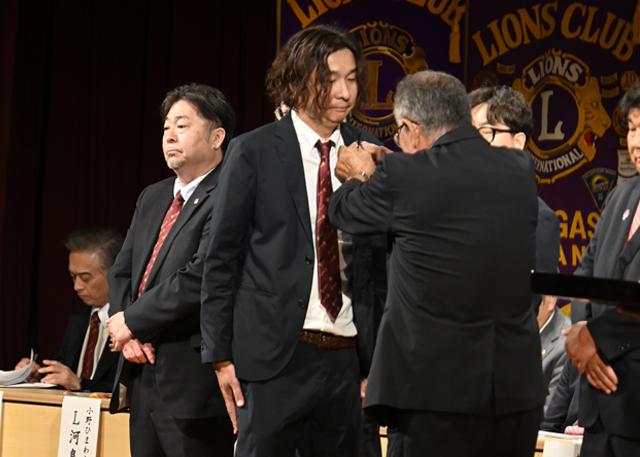 ![]() 新会員入会式 新会員バッチ装着 加東LC L.重松 貴純 |