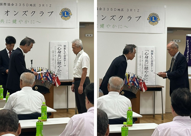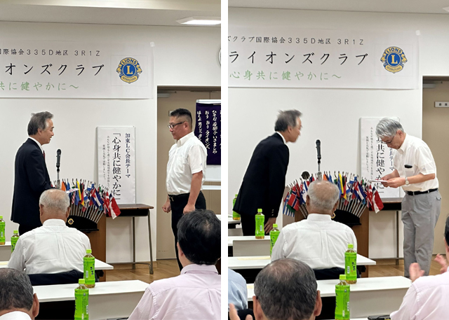 ![]() ゲスト紹介 加西ライオンズクラブ 会長 L.高井 宏文 幹事 L.深田 照明 |